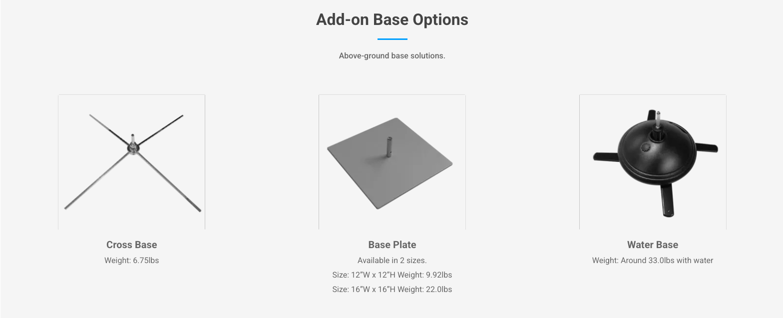 - A ground spike base as standard inclusions, other above-ground base solutions can be selected